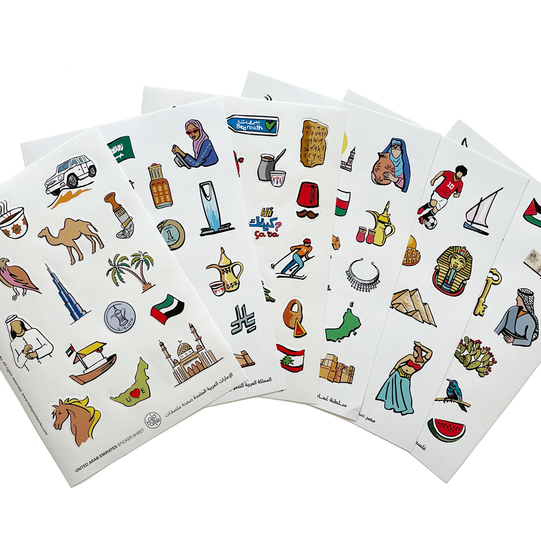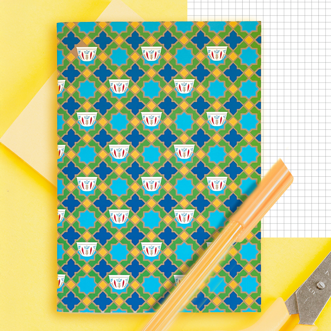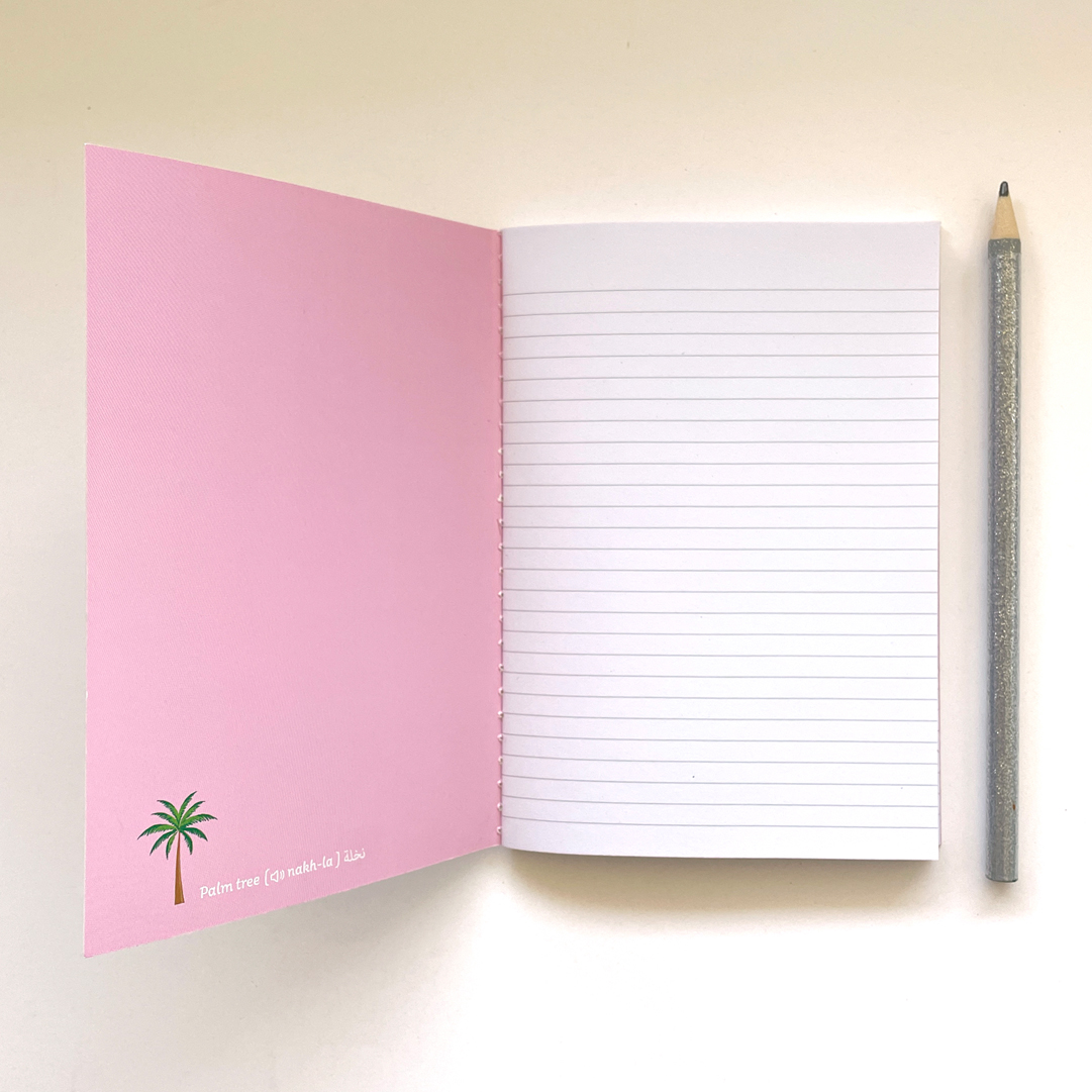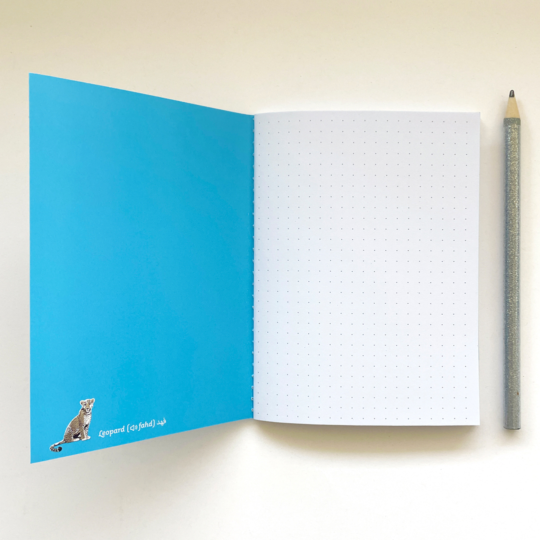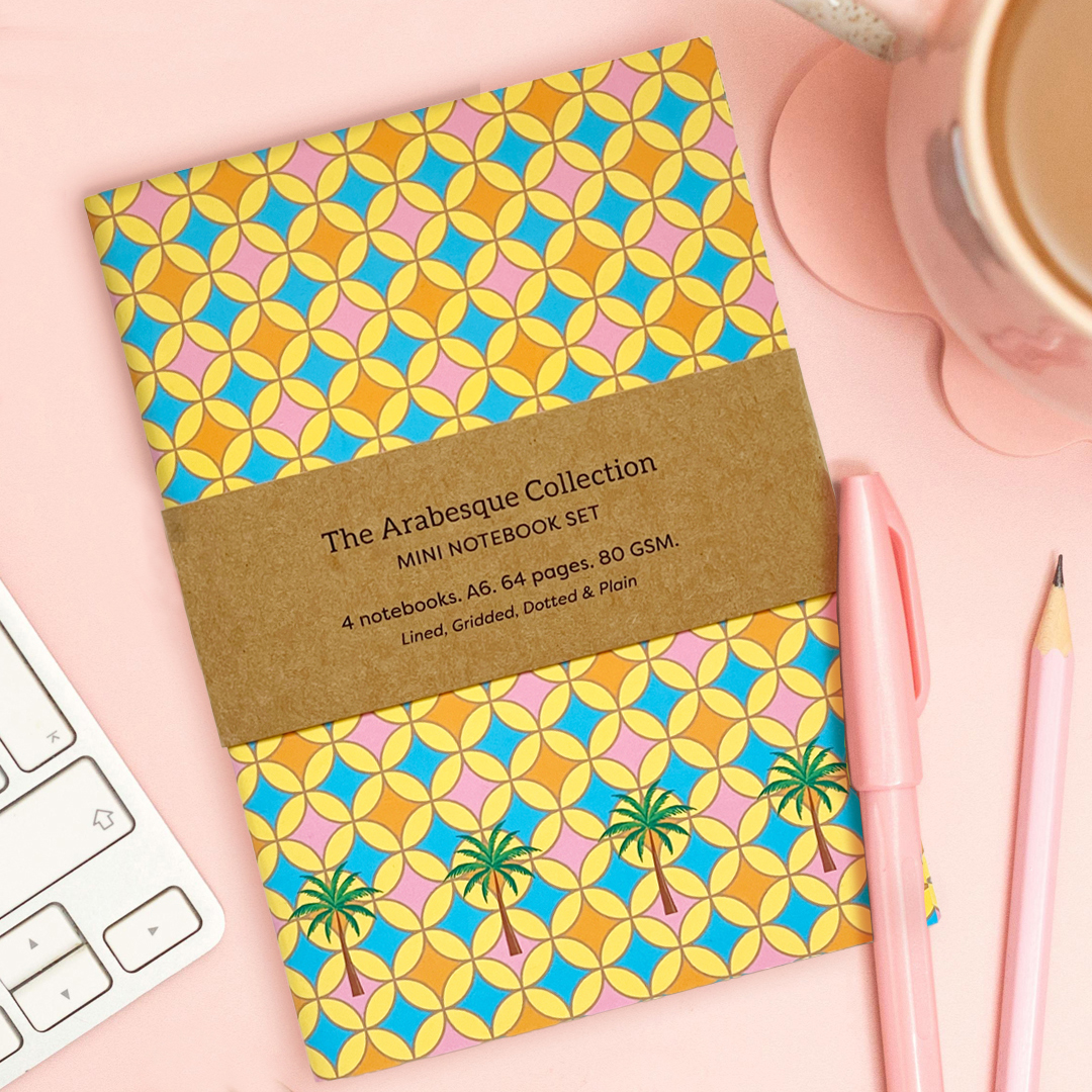 Discover a set of 4 Arabesque mini notebooks. Inspired by Arabic patterns and personalized by local icons (the camel, palm tree, Arabian leopard and traditional coffee cup). Elegant stationery made in the UAE. Perfect for notes, gifts, or journaling.