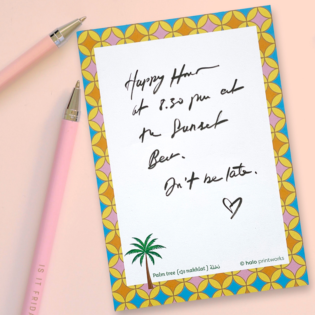 Arabesque Notepad featuring palm tree-inspired design. Made in the UAE, perfect for note-taking or gifting.