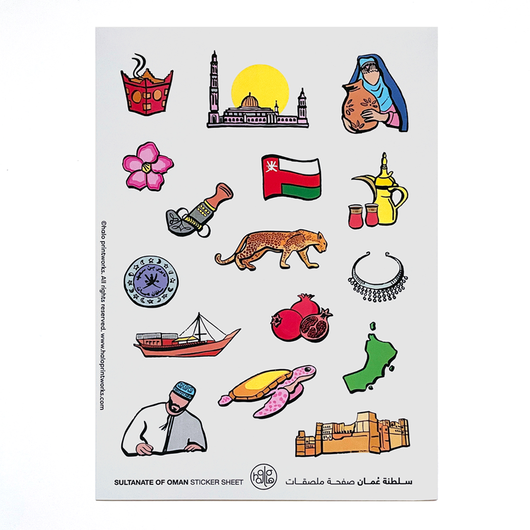 Inspired by Kingdom of Saudi Arabia national identity, landscape and culture, this sticker sheet brings fun and joy into your kid’s discovery of the Arab countries.