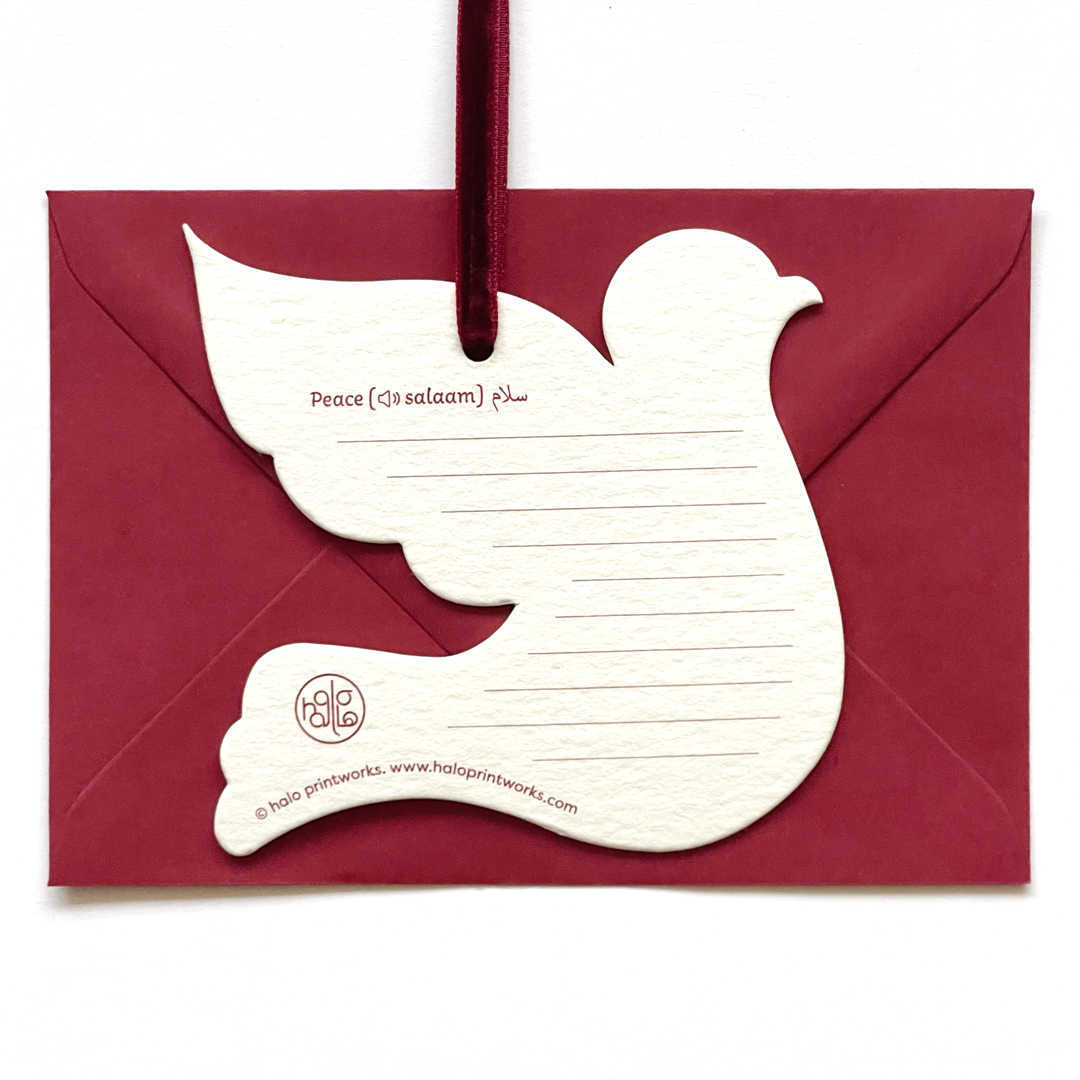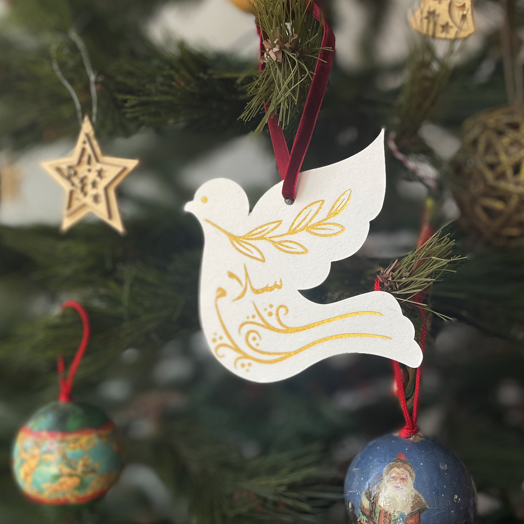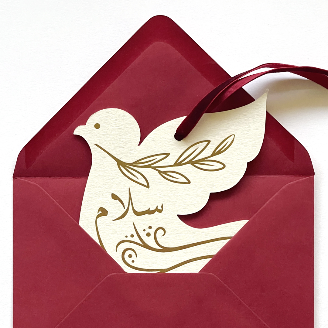 The design is a stylized dove carrying an olive branch. It is a universal symbol of peace.
